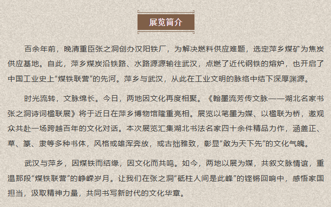 在工业文明脉络中结下渊源,“湖北名家书张之洞诗词楹联展”赴萍乡开展